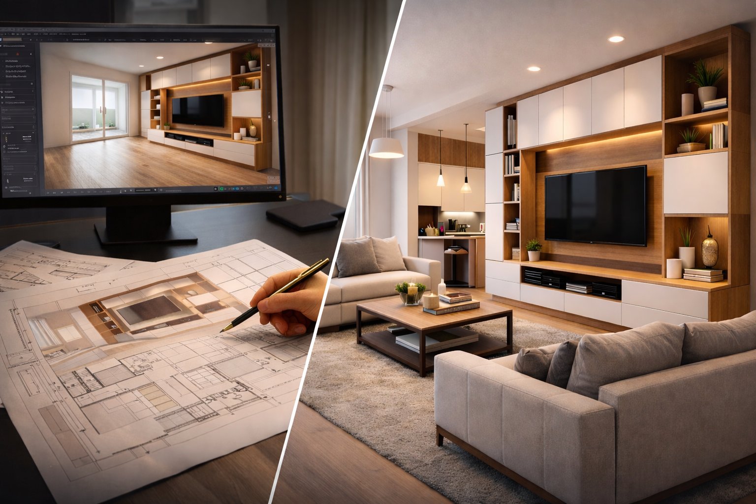 Os móveis planejados sob medida são desenvolvidos especificamente para o seu ambiente, respeitando medidas exatas, circulação, rotina e estilo de vida do morador. Diferente dos móveis prontos, eles não seguem padrões genéricos de fábrica.